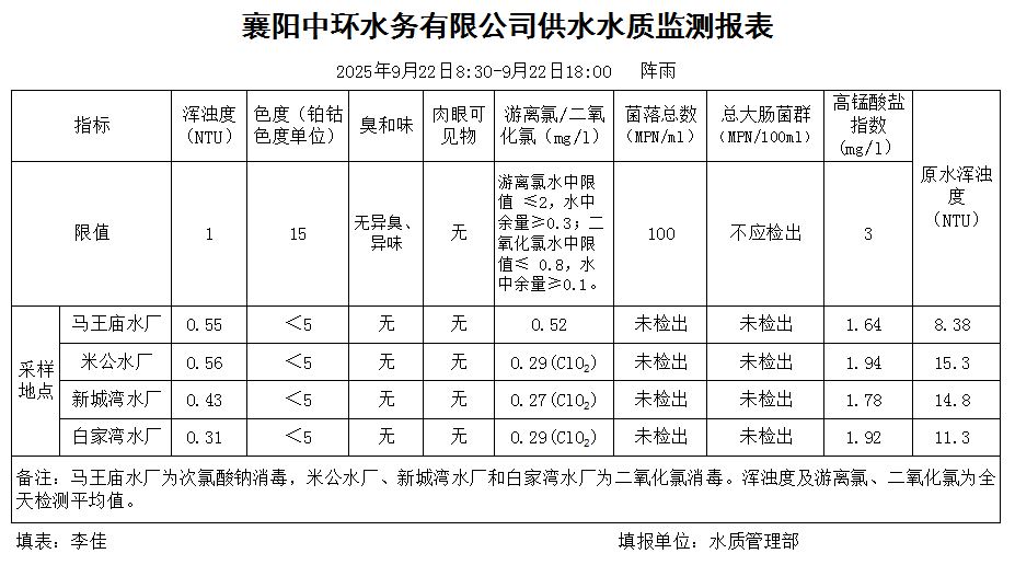 水质日报(2025年09月22日)