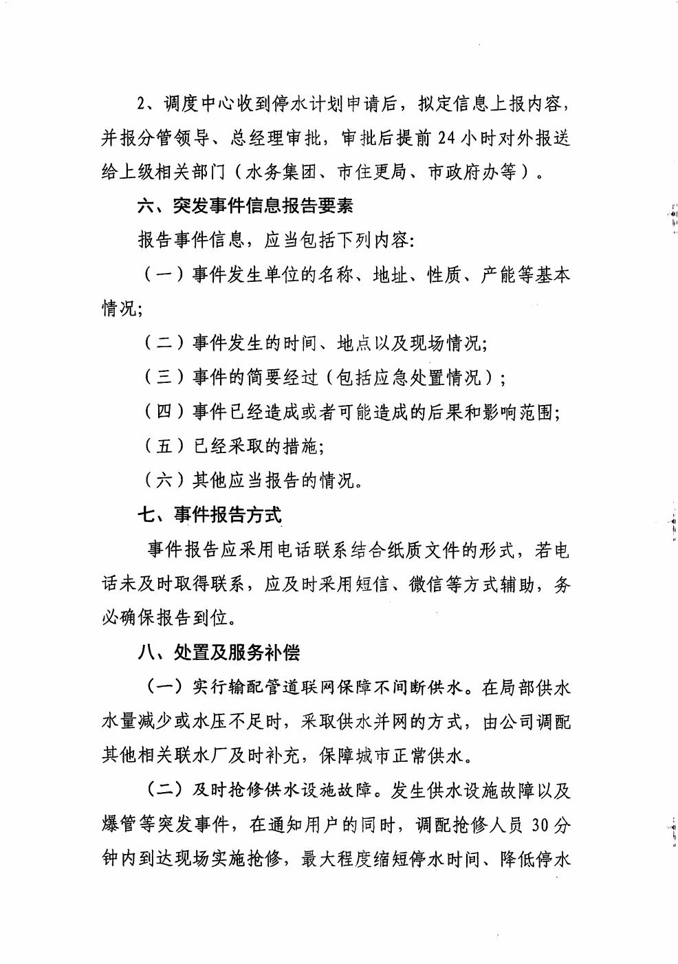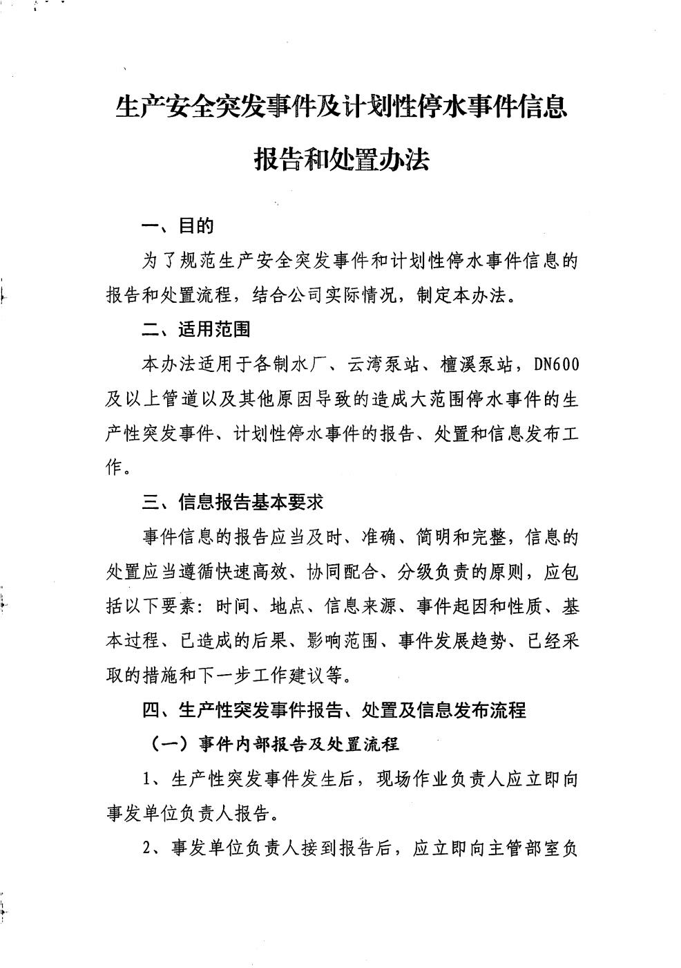 生产安全突发事件及计划性停水事件信息报告和处置办法