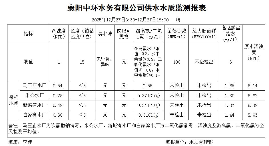水质日报(2025年12月27日)