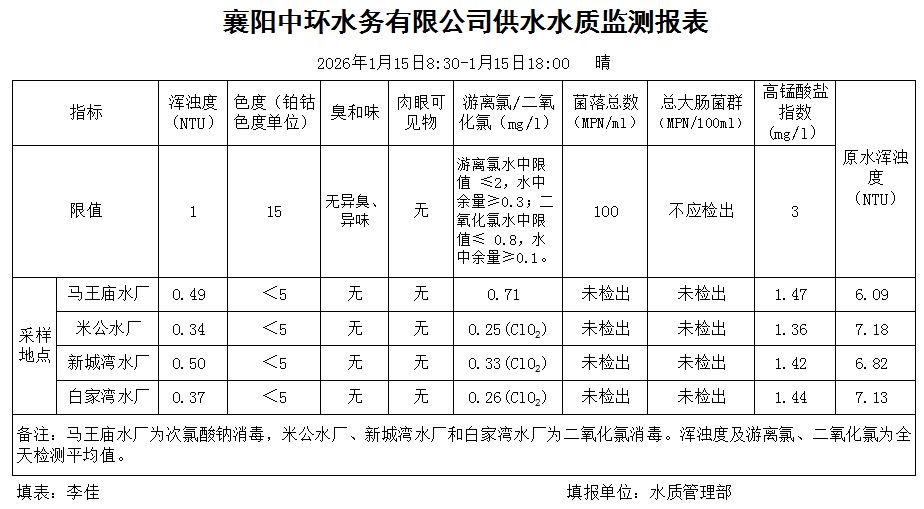 水质日报(2026年01月15日)
