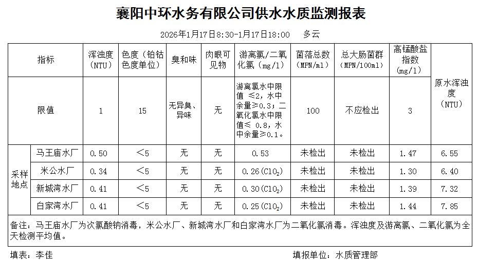 水质日报(2026年01月17日)