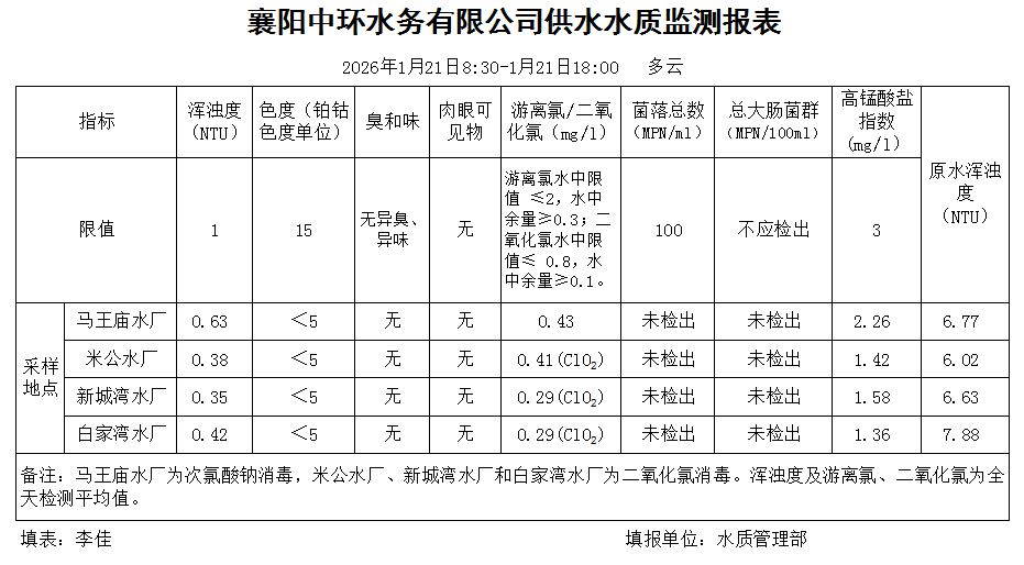 水质日报(2026年01月21日)