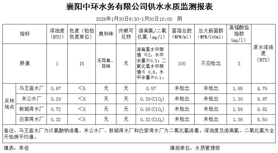 水质日报(2026年01月30日)