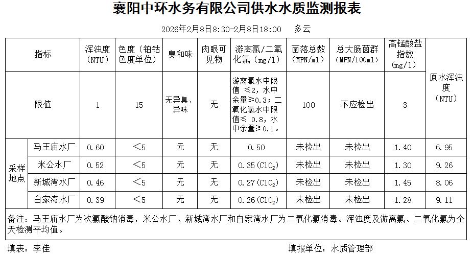 水质日报(2026年02月08日)
