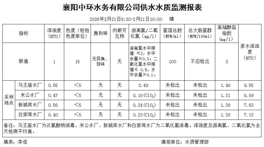水质日报(2026年02月21日)