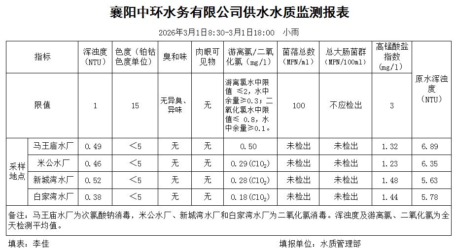 水质日报(2026年03月01日)
