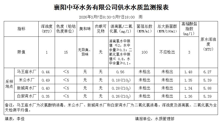 水质日报(2026年03月07日)