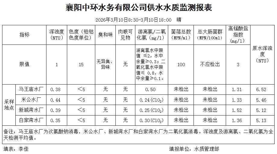 水质日报(2026年03月10日)