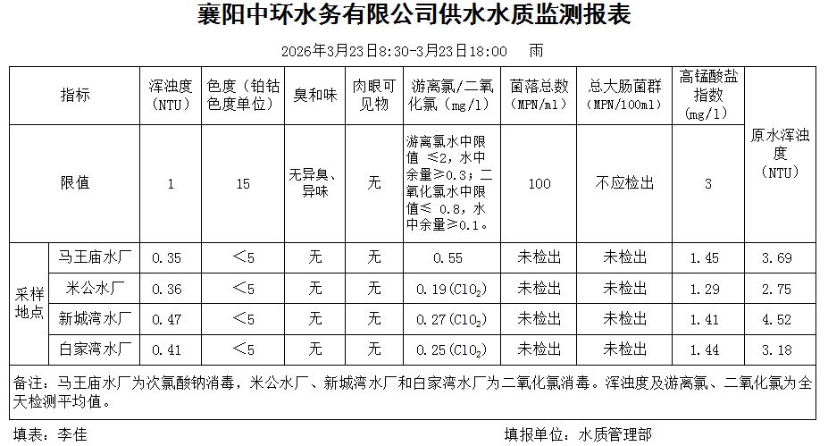 水质日报(2026年03月23日)