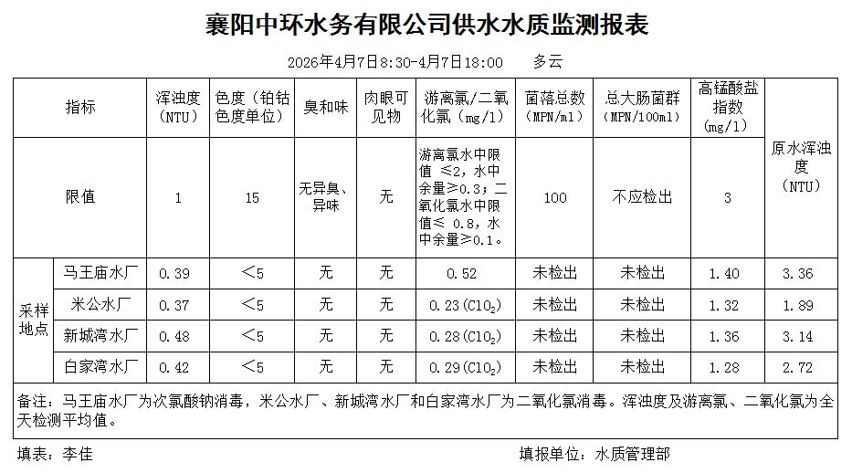 水质日报(2026年04月07日)