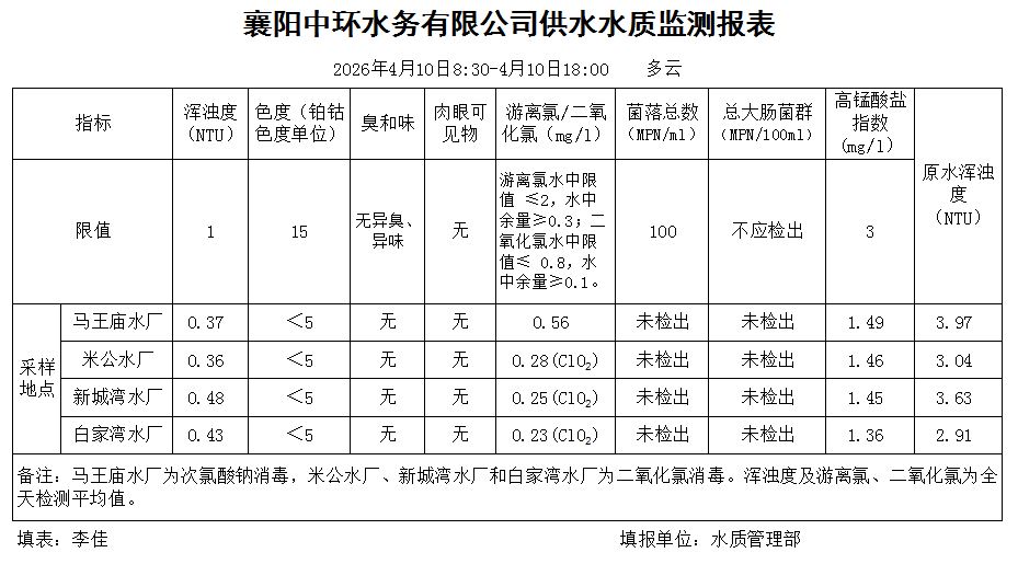 水质日报(2026年04月10日)